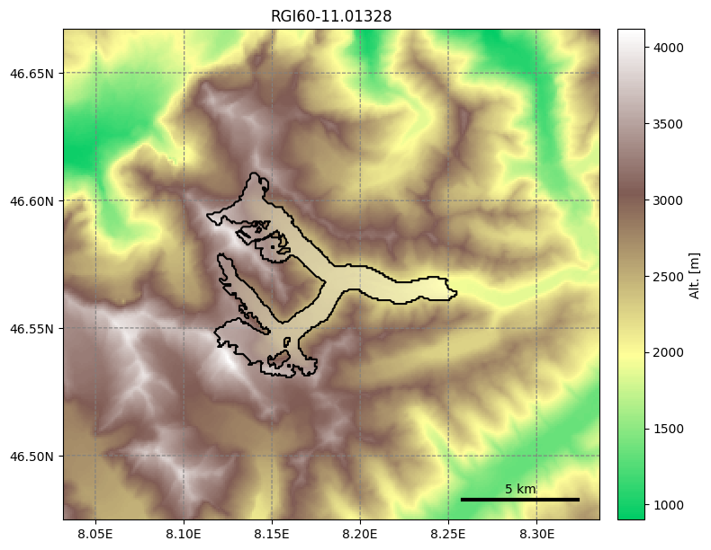 Path to the DEM: /tmp/OGGM/OGGM-GettingStarted/per_glacier/RGI60-11/RGI60-11.01/RGI60-11.01328/dem.tif