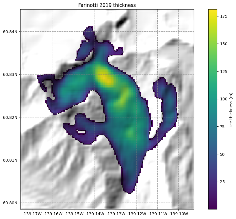 ds['consensus_ice_thickness'].plot(ax=ax4); ax4.set_title('Farinotti 2019');