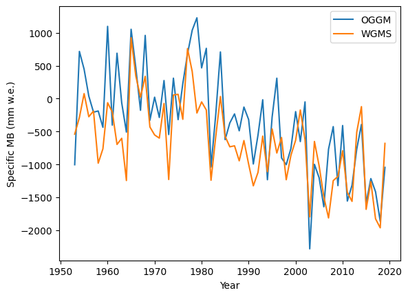 ref_df['OGGM'] = mbmod.get_specific_mb(fls=fls, year=ref_df.index.values)